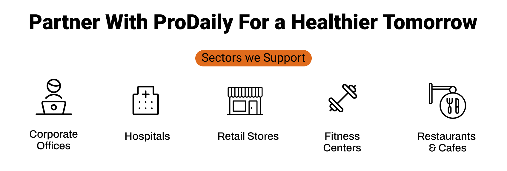 At ProDaily, we partner with health-focused businesses. Supplying bulk protein water to gyms, retailers, restaurants, hospitals, and corporate offices.